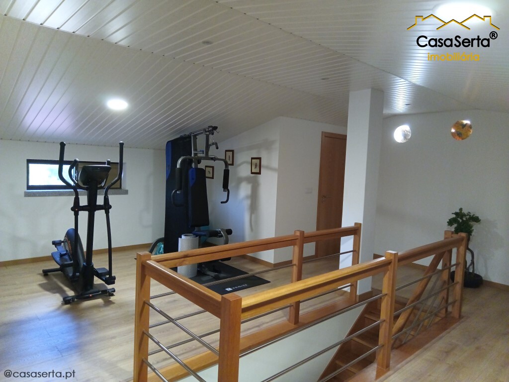 There is also an attic, transformed into a surprising space, currently set up as a gym and leisure area, with its own bathroom.