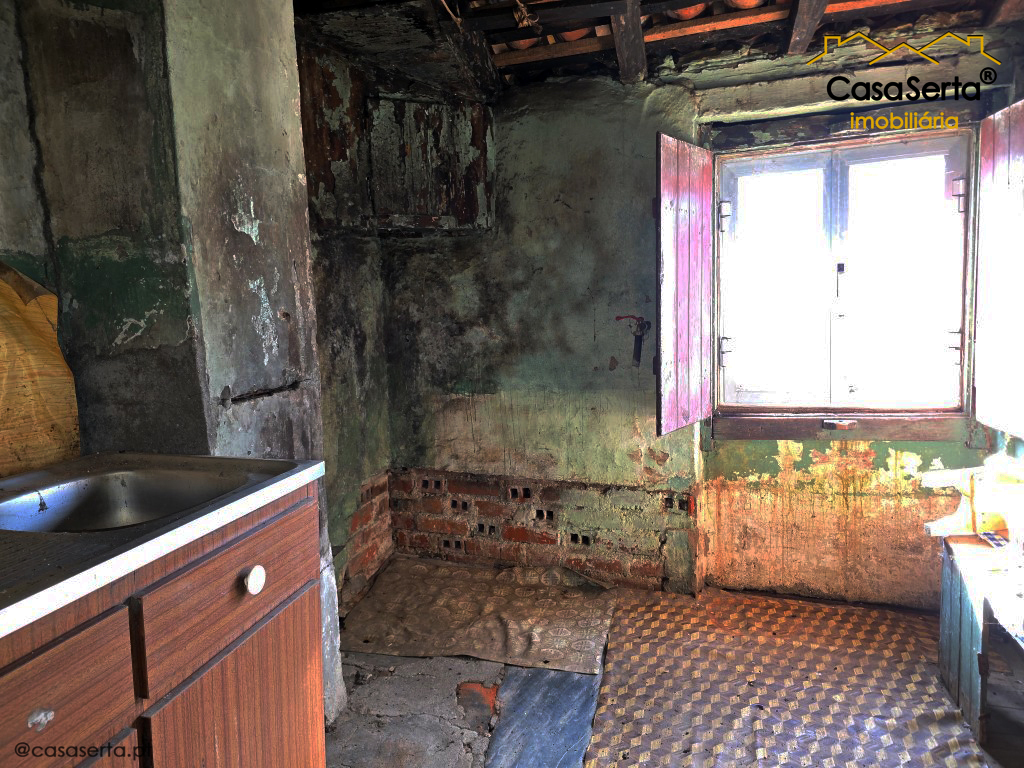 The house is spread over the ground floor and first floor. The ground floor consists of a bedroom, a small kitchen, and a bathroom, and the first floor consists of a large area in need of renovation, but with excellent potential for remodeling to your liking.