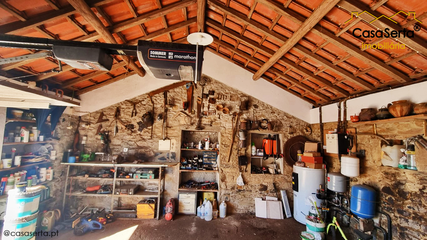 On the ground floor, it comprises a spacious kitchen, a bedroom, a cosy living room, three bathrooms, a garage/storage room with an automatic gate, a utility room and a wood store.