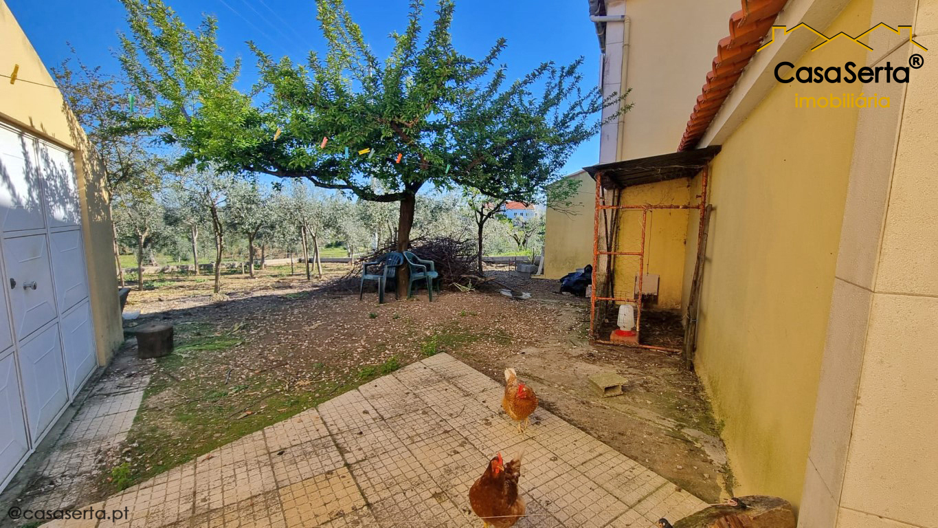 Outside, there is a fully walled garden with outbuildings for animals and a borehole for watering the vegetable garden and olive trees.